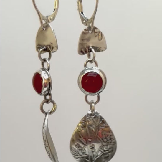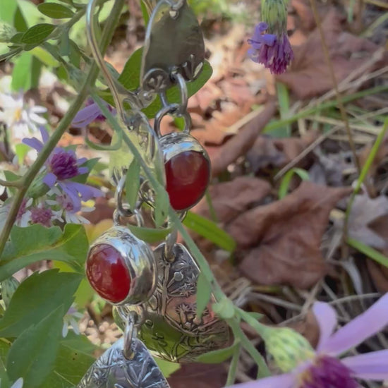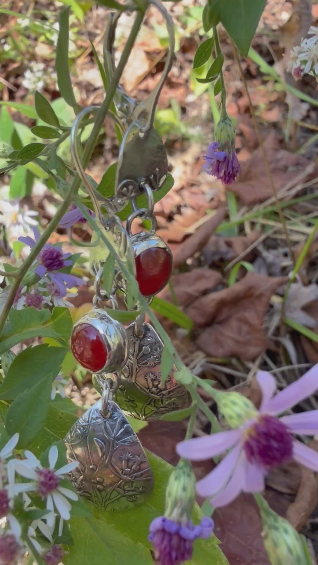Carnelian and Wildflower Drop Earrings| Sterling Silver