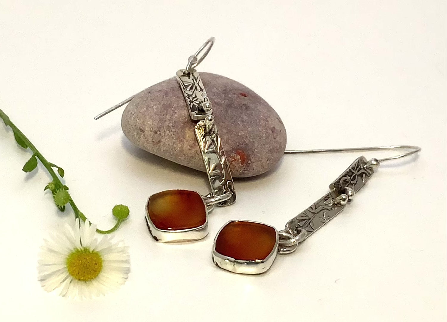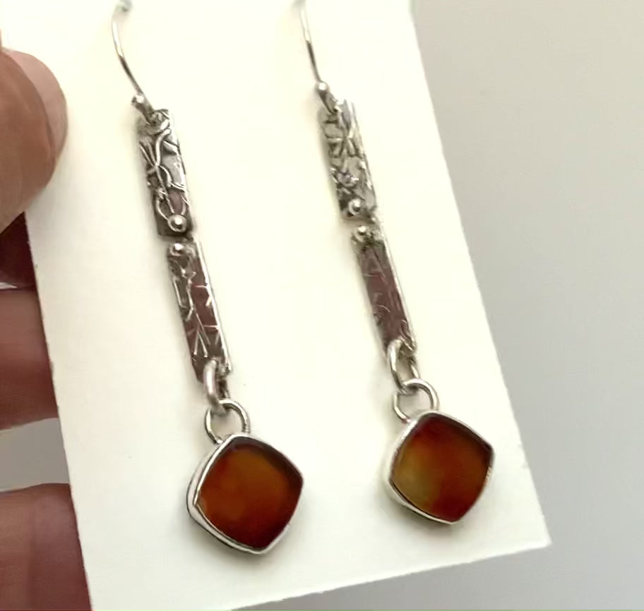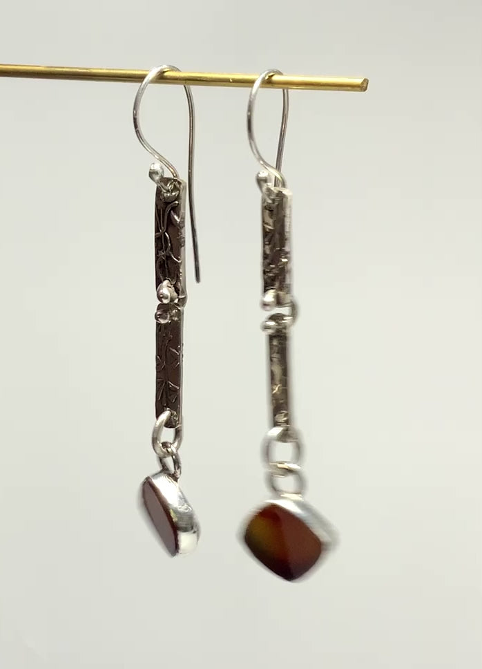Nature inspired vine pattern and warm carnelian mix it up for a gorgeous pair of earrings. I love making one of a kind jewelry, and my hand made pattern I developed for my jewelry line assures that each piece is unique and original for you!