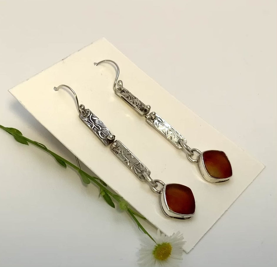 Carnelian and Woodland Vine Sterling Earrings
