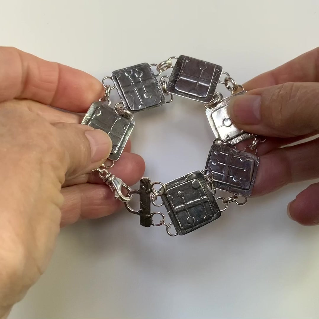 This handcrafted sterling silver bracelet with intricate embossed textures. Customizable for a perfect fit, it accommodates sizes from 7” to 8 1/4”.