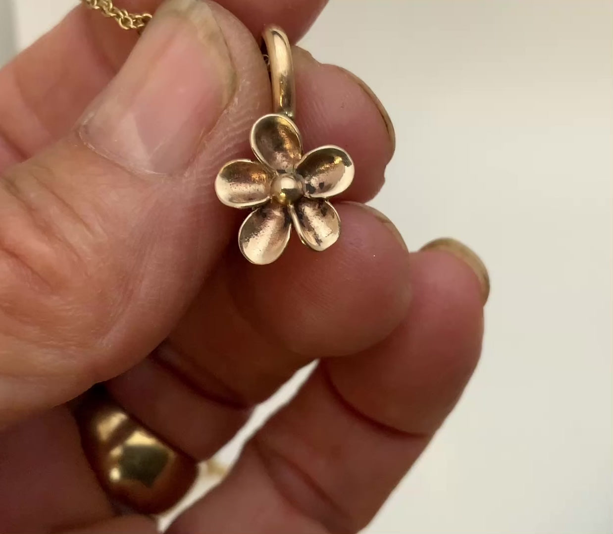 Bronze Handmade Flower Artisan Necklace with 18” Gold Fill Chain