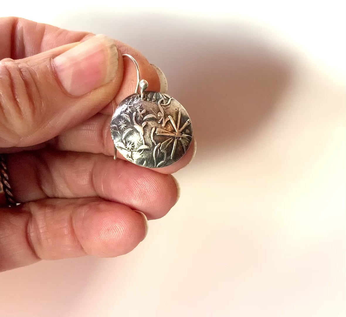These Wildflower Silver Earrings are lightweight, unique, and perfect for everyday wear. Featuring a deep embossed native flower pattern on a satin grey finish, they offer a comfortable, elegant touch.